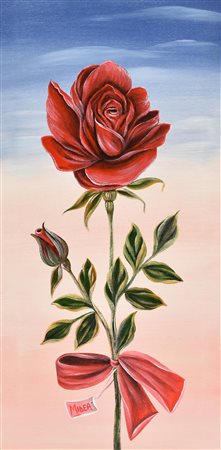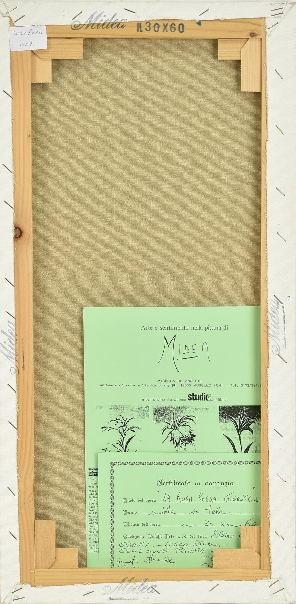 Midea LA ROSA ROSSA GIGANTE tecnica mista su tela, cm 60x30 firma L'opera e'...