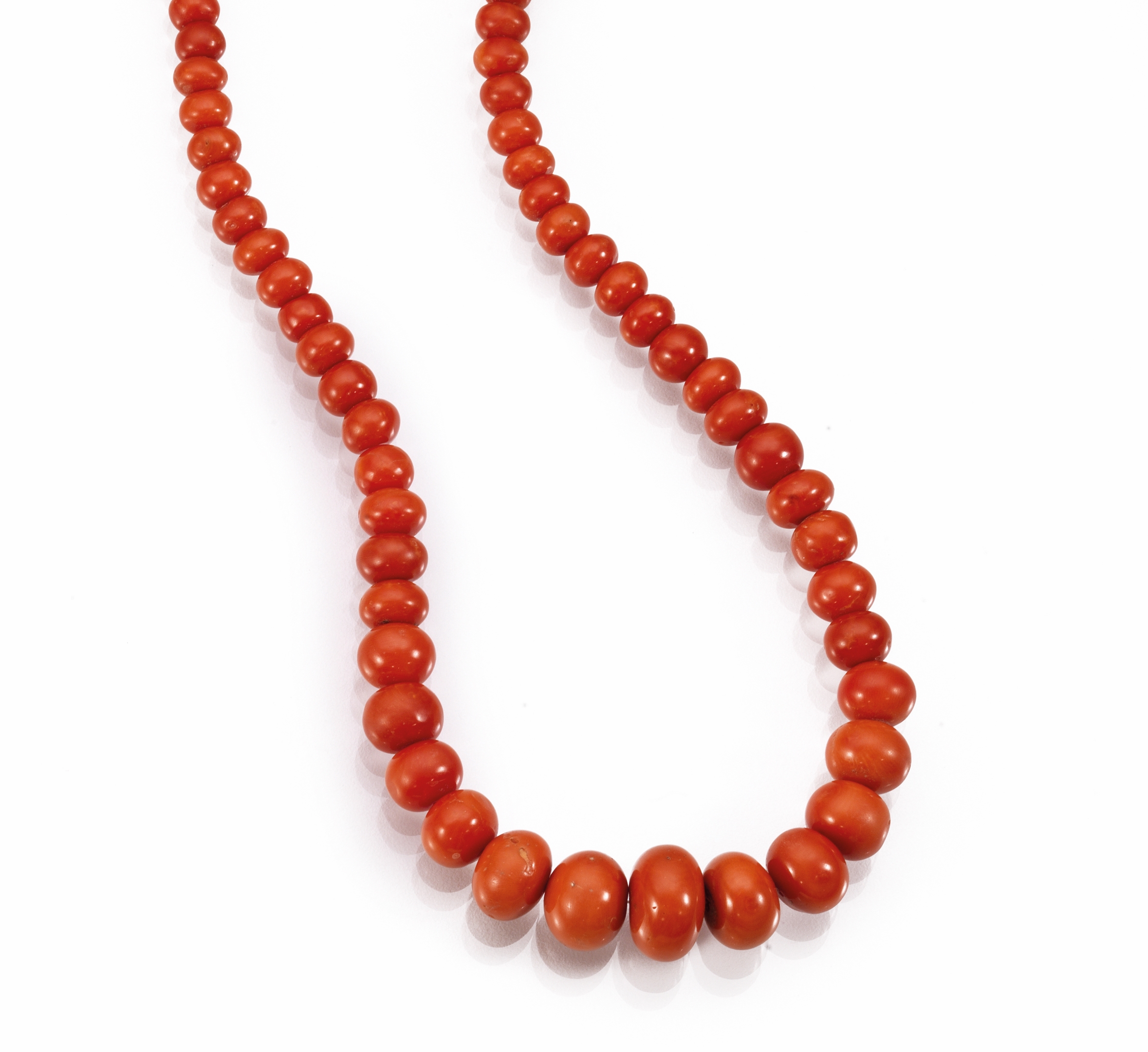 Filo in corallo realizzato ad una fila di sferette poste in gradazione, g 83