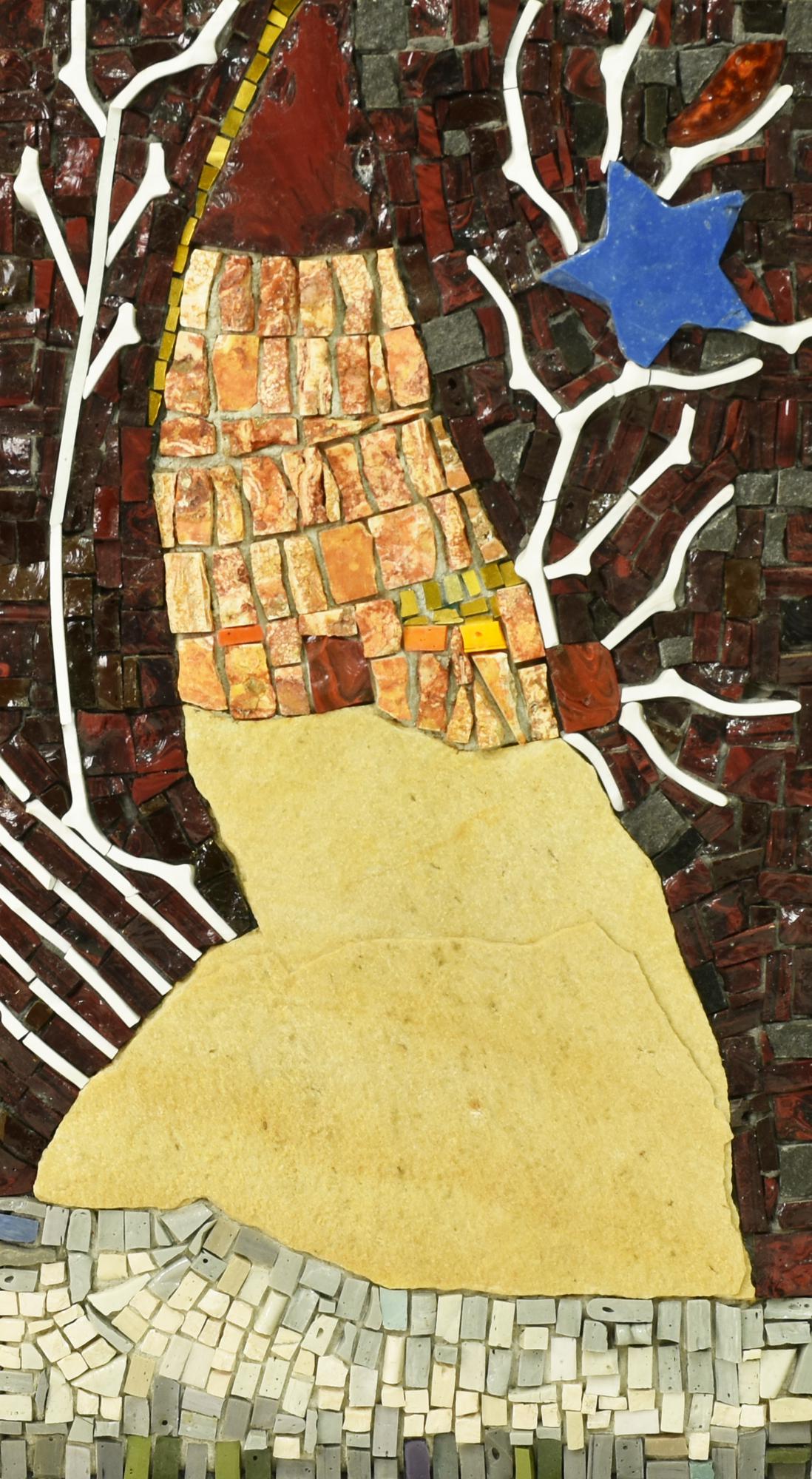 B. Zenafio COMPOSIZIONE mosaico e applicazioni su tavola, cm 59x32 sul retro:...