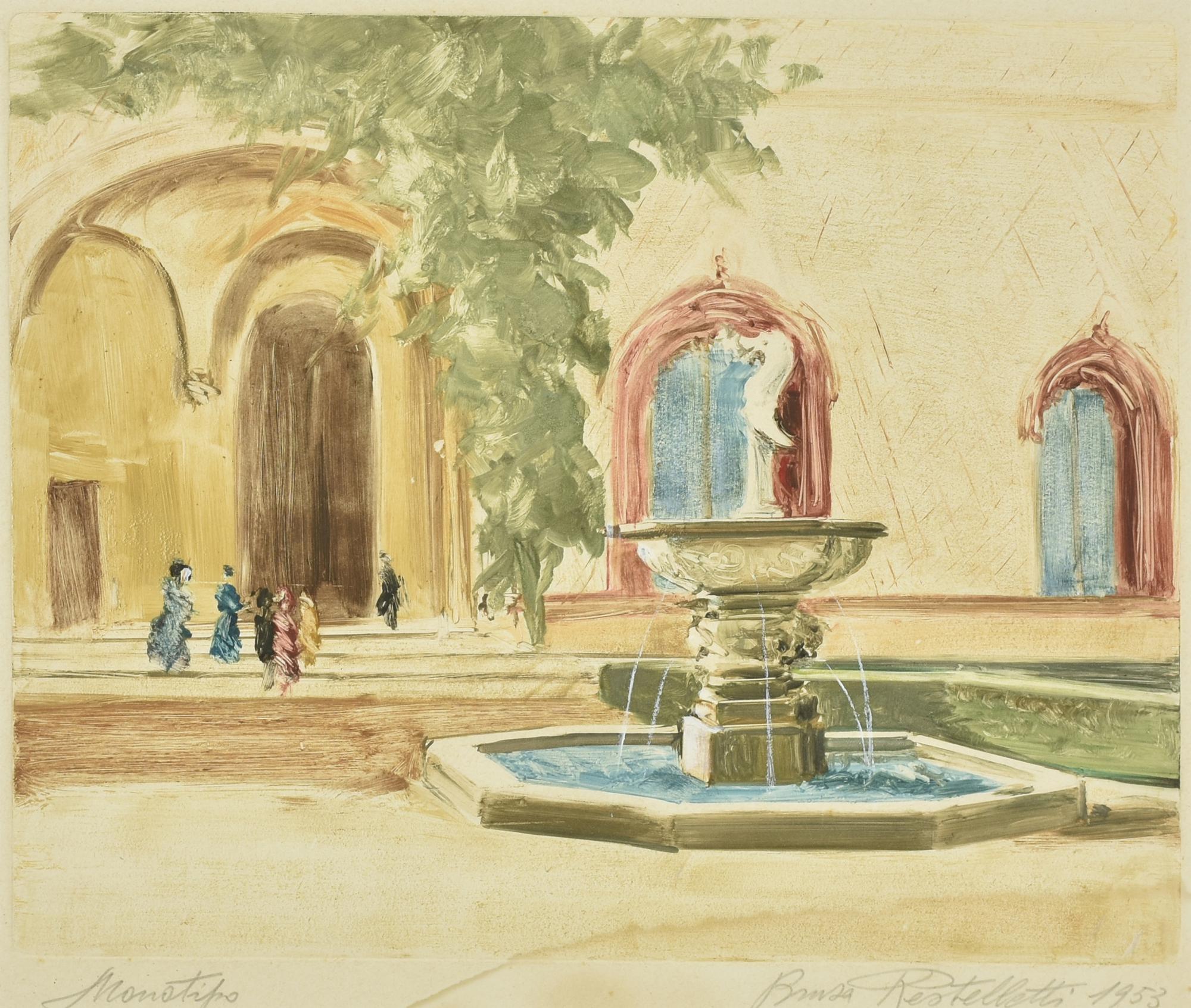Lotto 152 | Brusa Restelletti LA FONTANA incisione ritoccata a mano, battuta cm 30x37, su...