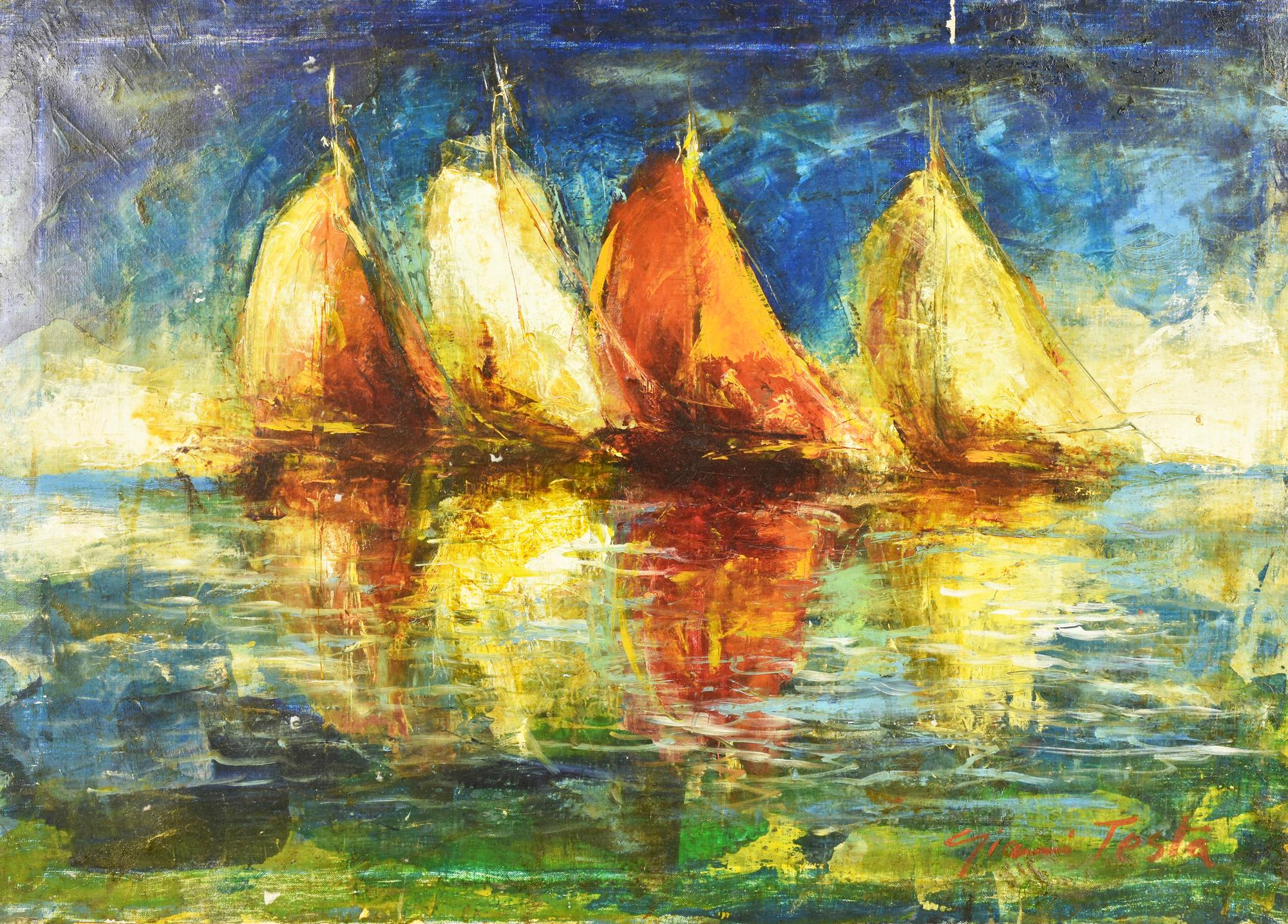 Gianni Testa REGATA pastelli ad olio su tela, cm 40x50 firma sul retro: firma...