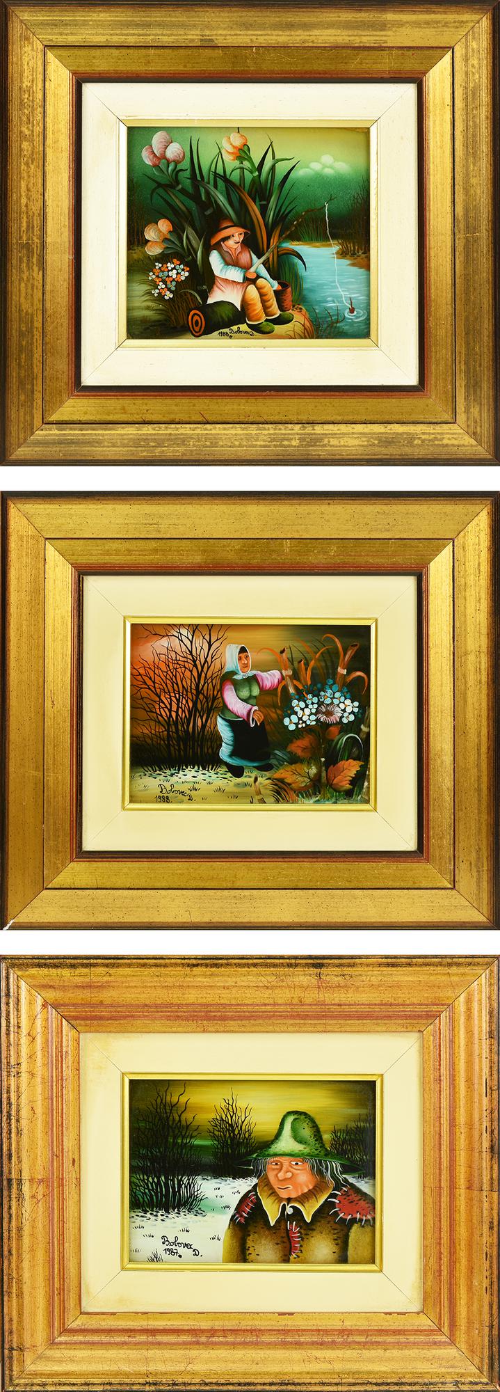 Lotto 177 | D. Bobovec LOTTO DI 3 QUADRI NAIF composto da: -olio su vetro, cm 13x16 -olio...