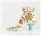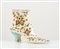 Scultura in ceramica decorata al tacchiolo su fondo crema, tacco con decorazione floreale in rilievo, reca sotto la base iscrizione “Minghetti/Bologna/Italy”, H cm 19x25x9 (lievi usure – sbeccatura al tacco)