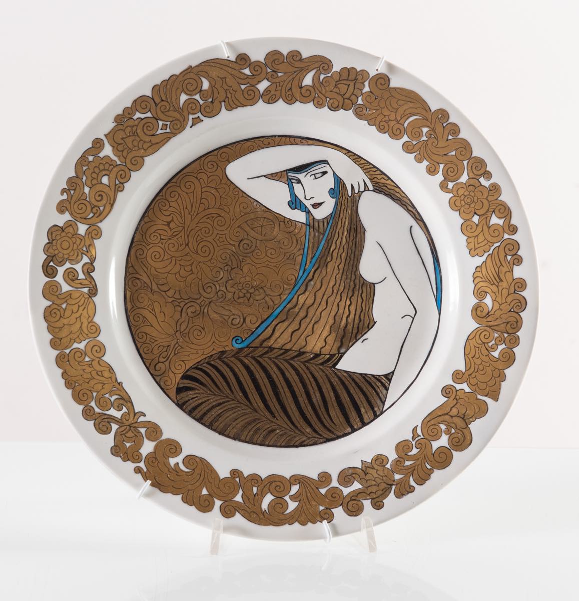 Eugenio Colmo detto Golia (Torino 1885 – 1967), Lotto di due piatti in ceramica con raffigurazioni di gusto Liberty, 1924/1925.