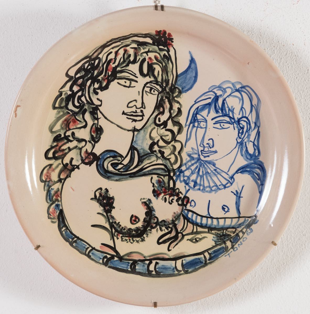 Antonio Zancanaro detto Tono (Padova 1906 – 1985), Piatto in ceramica raffigurante “Figure femminili”, 1968.