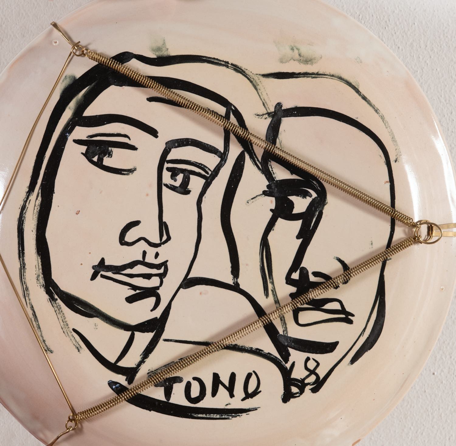 Cavetto decorato in policromia, reca in basso a destra firma e data “Tono 68”, presenta al retro decorazione firmata e datata “Tono 68”, H cm 4 – diametro cm 35