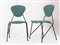 Seduta e schienale imbottiti rivestiti in tessuto verde, struttura sagomata in metallo laccato nero, recano sotto la base etichetta della manifattura, H cm 82x41x45 – seduta H cm 44.5