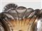 Formato da due conchiglie porta-oggetti con alzata centrale lavorata, reca alla base punzoni, reca alla base punzoni, H cm 26x46x18 (difetti – usure)