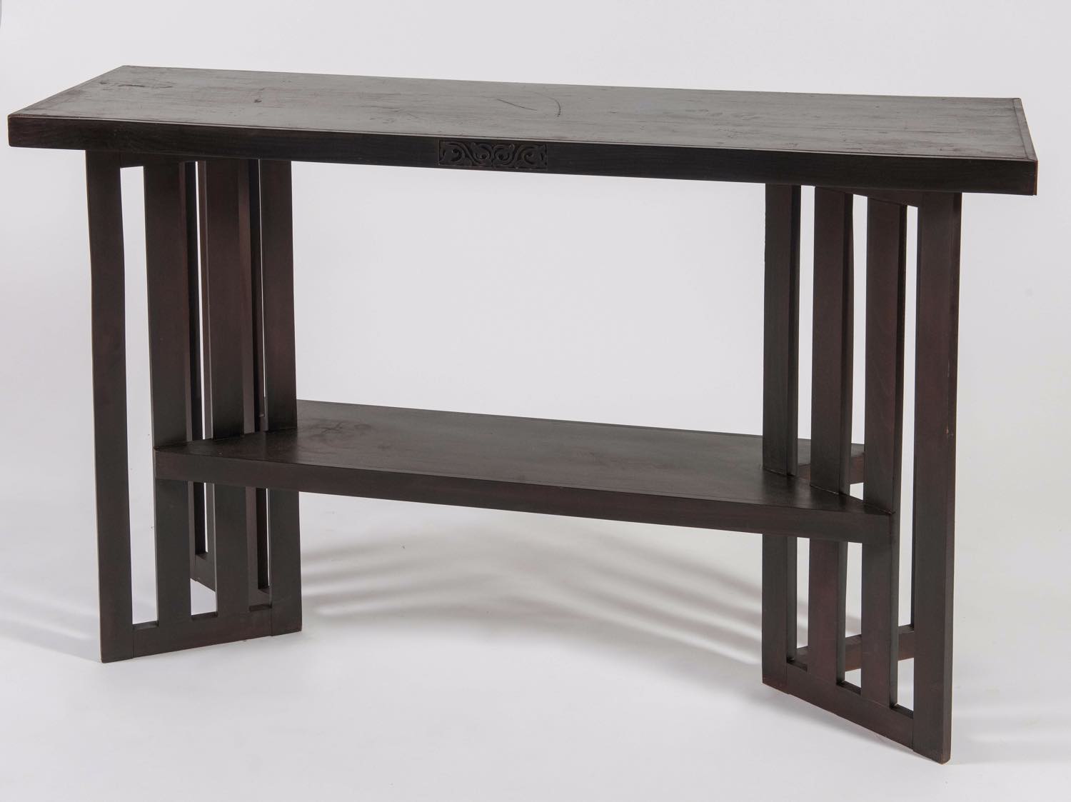 Console da centro il legno lavorato tinto scuro, Italia, Anni ‘80.