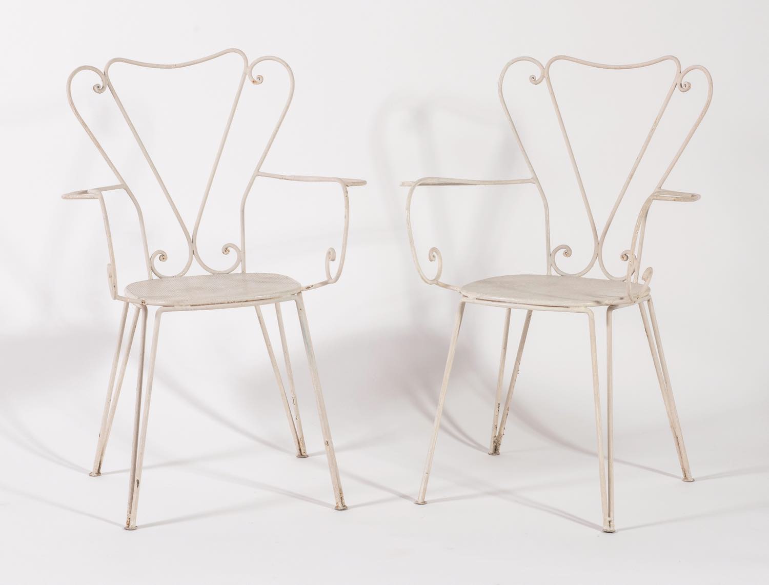 Coppia di sedute da esterno in ferro lavorato e laccato bianco, Italia, Anni ‘70.