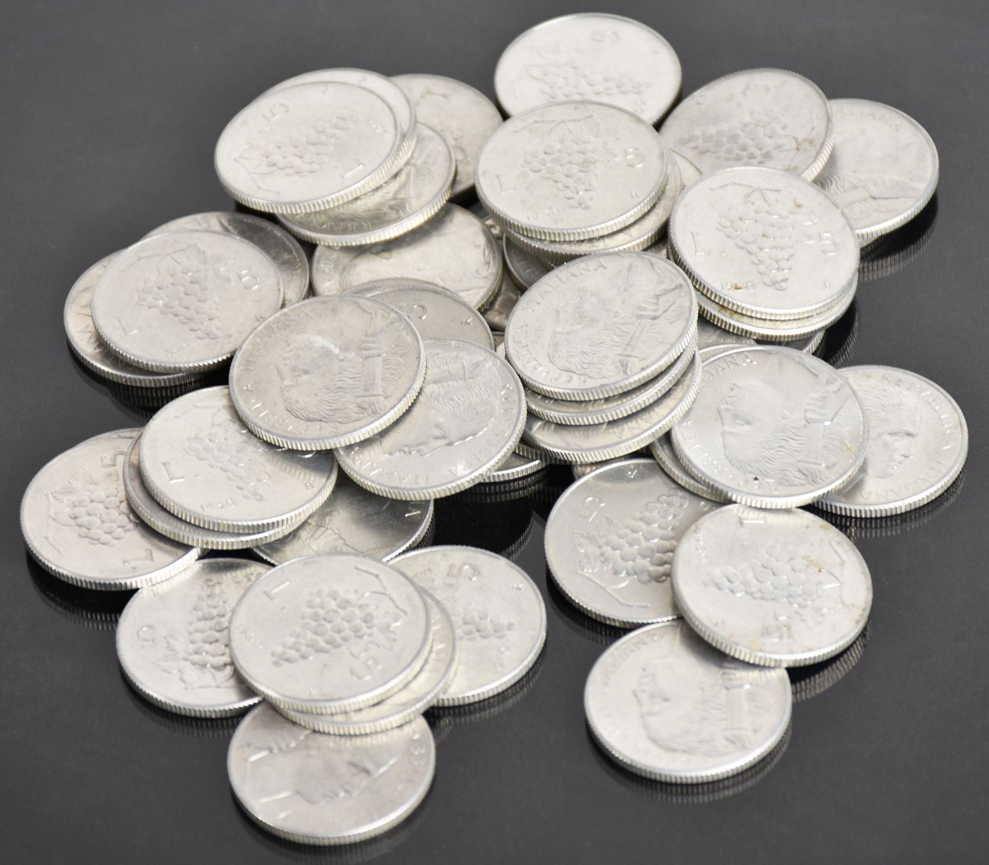 LOTTO DI 50 MONETE DELLA REPUBBLICA ITALIANA composto da: 5 lire 1950