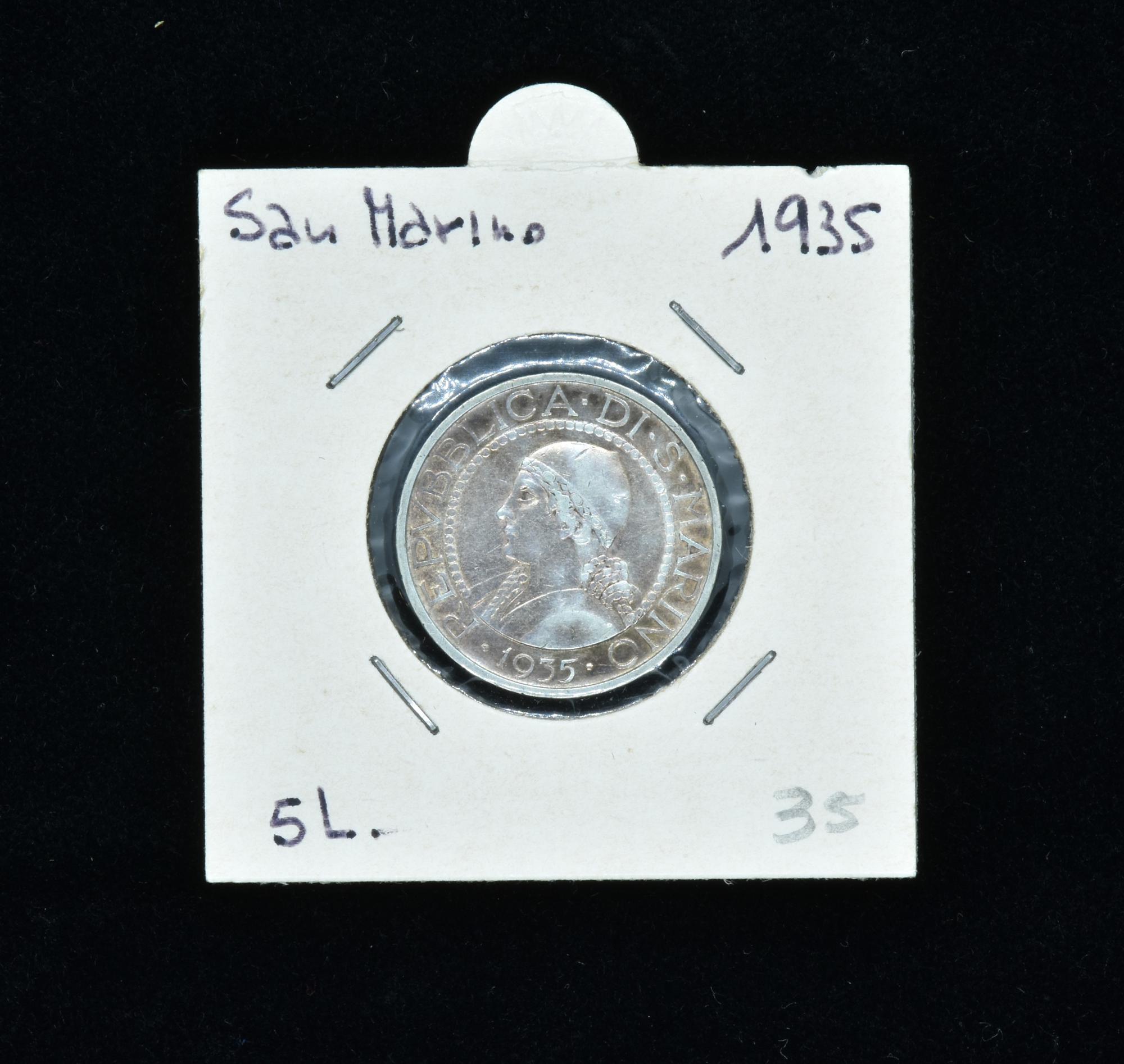 Precedente Lotto 176 Successivo Livebid - Via Tiziano Vecellio 34/D, 10126 Torino MONETE DEL MONDO E ITALIANE Sessione Unica mercoledì 5 ottobre 2022 ore 21:00 (UTC +01:00) 5 LIRE SAN MARINO 1935 5 LIRE SAN MARINO 1935