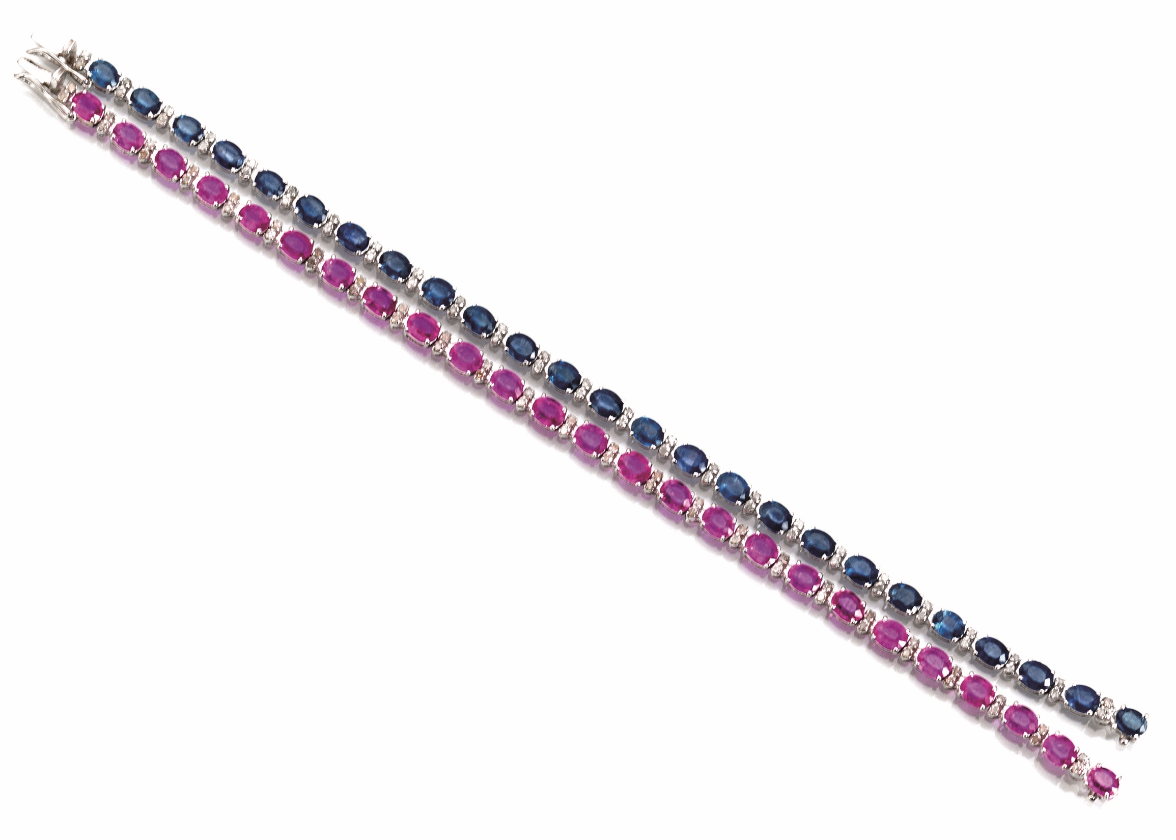 realizzato ad una fila di rubini ovali montati a griffe e intercalati da coppie di piccoli brillanti, punzone 750, g 8 (2)