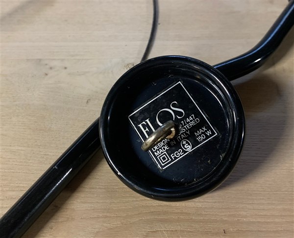 Lampada modello "Parentesi". Produzione Flos, Milano, 1971. Acciaio verniciato nero. Recanti etichetta della produzione. (h cm 400) (lievi difetti)