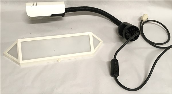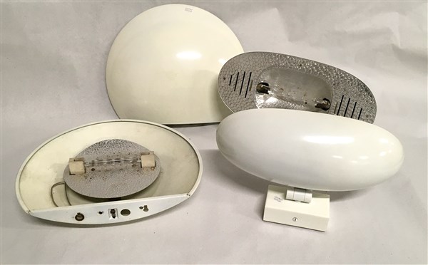 Lotto composto da cinque lampade da parete e una lampada a morsetto di epoche, misure e produzioni differenti.