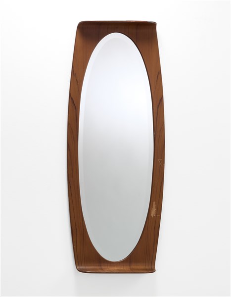 Specchio da parete ovale con cornice in legno. Italia, seconda metà secolo XX. (cm 115x45) (difetti)