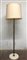 Lampada da terra a tre luci con paralume in tessuto color panna, fusto regolabi