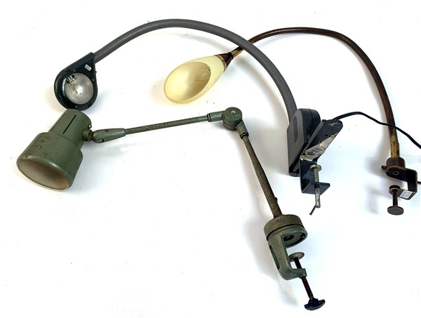 Lotto composto da tre lampade da tavolo a morsetto di epoche, misure e manifatt