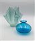 Lotto composto da un vaso a fazzoletto in vetro azzurro acidato sulla superfici