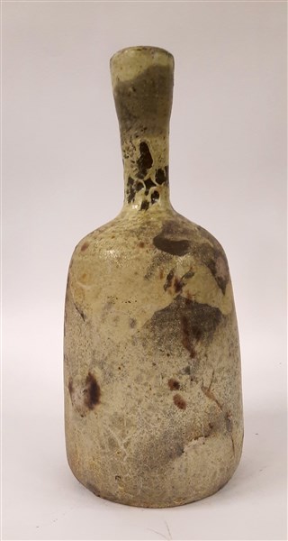 Grande bottiglia a collo stretto in gres smaltato in beige e a macchie verdi e