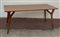 Tavolo con struttura in legno, piedini in ottone e piano in vetro retroverniciato cipria. Italia, anni '50. (cm 190,5x81x87) (lievi difetti)