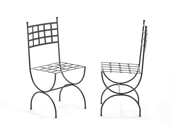 Coppia di sedie in ferro verniciato marrone. Italia, anni '70. (cm 42x92,5x42)
