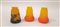 Coppia di coppe diffusore per lampada in pasta vitrea arancione e gialla unite a una coppa analoga in pasta vitrea gialla, blu e arancione. Luneville, prima metà secolo XX. (h max cm 14,5) (lievi difetti)