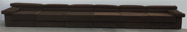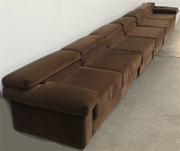 Divano componibile modello "Erasmo". Produzione B&B, Italia, anni '70. Velluto marrone. (cm 560x63x93) (lievi difetti)