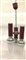 Lampada a sospensione a tre luci con struttura in metallo verniciato bordeaux. Italia, anni '70.(h cm 125)