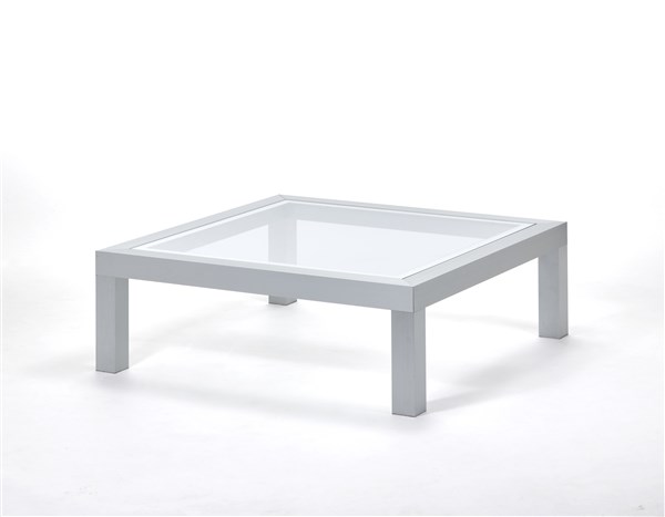 Tavolino da salotto modello "Essential". Produzione Driade, Italia, 1971. Impiallacciato in alluminio anodizzato satinato. (cm 120x40x120) (difetti alla struttura e restauri)