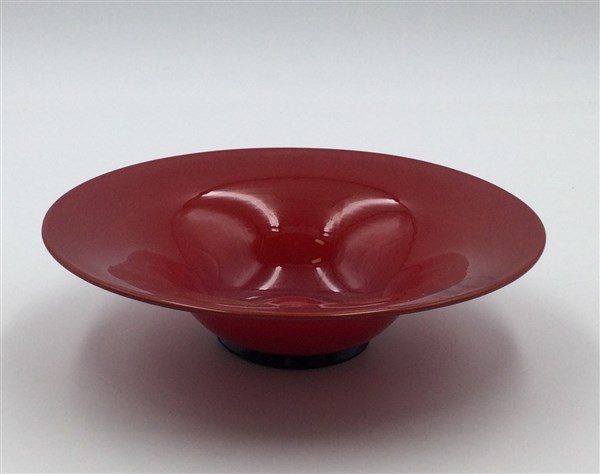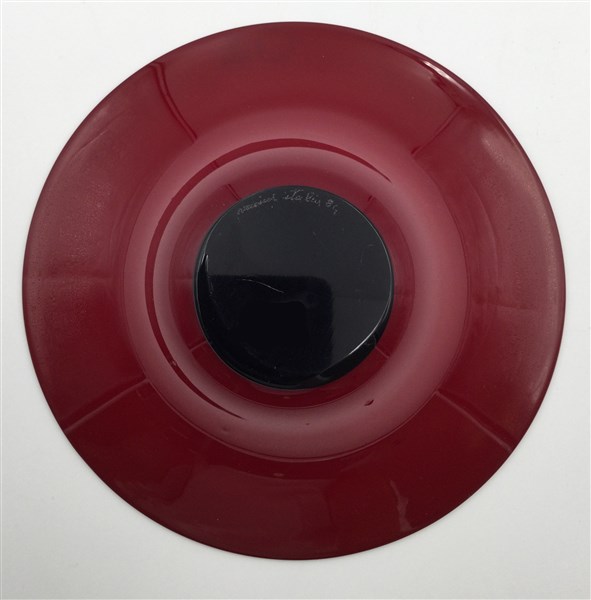 Centrotavola della serie "Opalini". Murano, 1984. Vetro rosso e base applicata nera. Firmato a punta sotto la base "Venini Italia 84". (h cm 5,5; d cm 20) (lievi difetti)