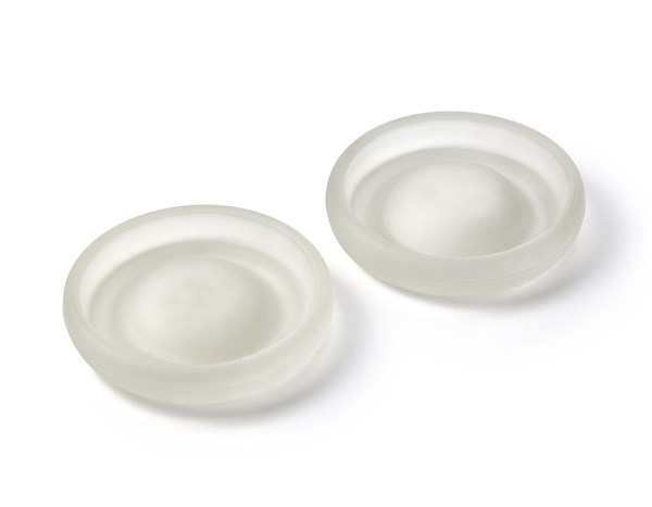 Due posacenere modello "Delos". Produzione Danese, Milano, anni '80. Vetro lattimo acidato. (d cm 21)