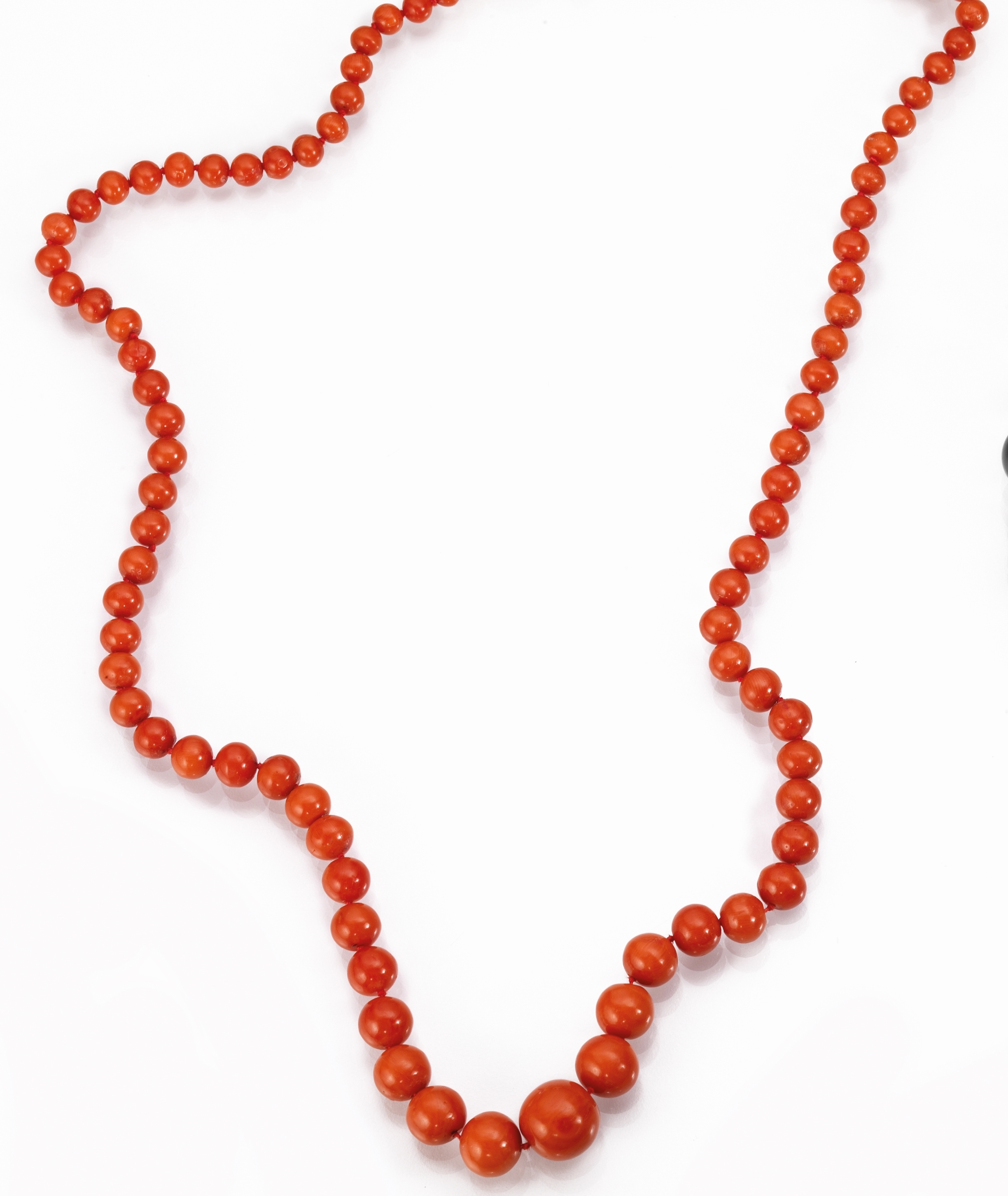Collana in corallo ed oro giallorealizzata ad un fila di sferette poste in...
