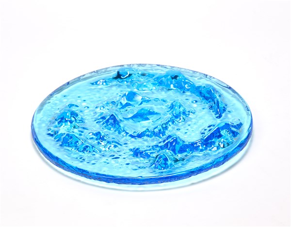Grande murrina centrale utilizzata per piatto a incalmo della serie 529. Venini, Murano. Vetro trasparente azzurro con superficie corrugata e scalpellata. (h cm 25) (difetti e restauri)