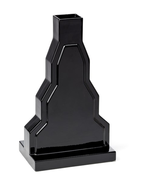 Vaso/scultura in ceramica smaltata nera sotto vetrina. Italia, seconda metà sec