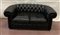 Divano Chester a due posti imbottito e rivestito in pelle nera. (cm 160x66x80)