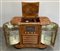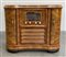Mobile bar con impianto radiofonico a valvole modello "108B". Italia, anni '40/'50. Impiallacciatura in radica, due sportelli laterali con interni attrezzati a mobile bar illuminati e rivestiti da tessere a specchio. Piano con coperchio sollevabile celante giradischi. (cm 102x90x48) (difetti e restauri)