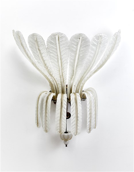 Manifattura di Murano Lampada da parete a tre luci con foglie pendenti in vetro