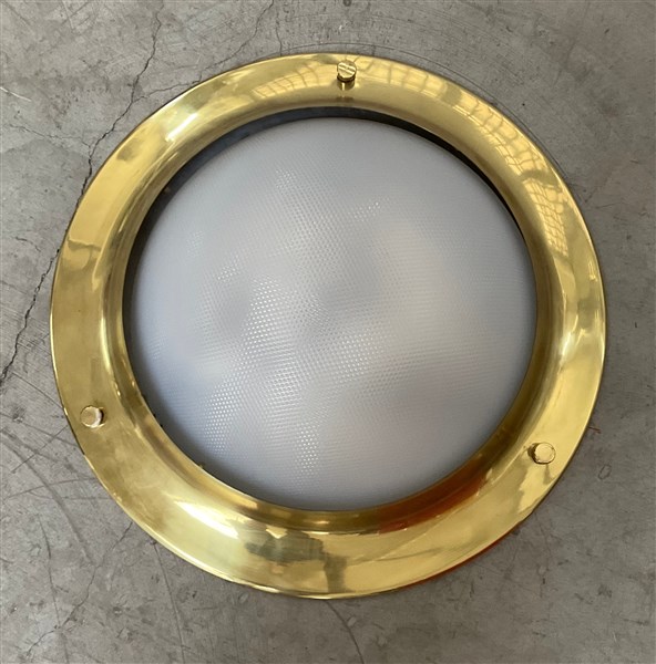 Plafoniera modello "LPS6 Tommy". Produzione Azucena, Milano, 1965. Struttura in ottone, paralume in plastica trasparente. (d cm 65,5) (lievi difetti)
