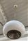 Lampada a sospensione modello "Black and White". Produzione Flos, Milano, 1965. Paralume in vetro soffiato lattimo e struttura in alluminio. (d cm 50) (lievi difetti)