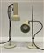 Coppia di lampade da tavolo con struttura in metallo, base e paralume in metall