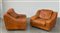 Coppia di poltrone imbottite e rivestite pelle color marrone. Italia, anni '70.