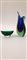 Lotto composto da un vaso a valva in vetro sommerso blu, arancio e verde e da una coppetta in vetro sommerso incolore e verde. Seconda metà secolo XX. (h max cm 30) (lievi difetti)