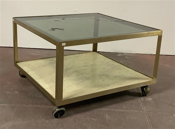 Lotto 816 | Tavolino da salotto su rotelle con struttura in acciaio, piano superiore in vet