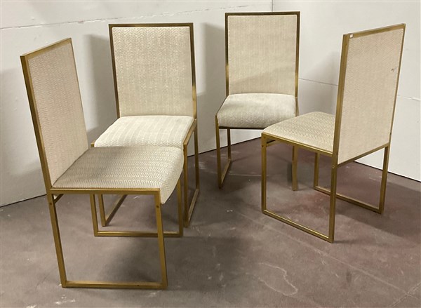 Lotto 854 | Quattro sedie con struttura in metallo dorato, seduta e schienale imbottiti e r