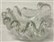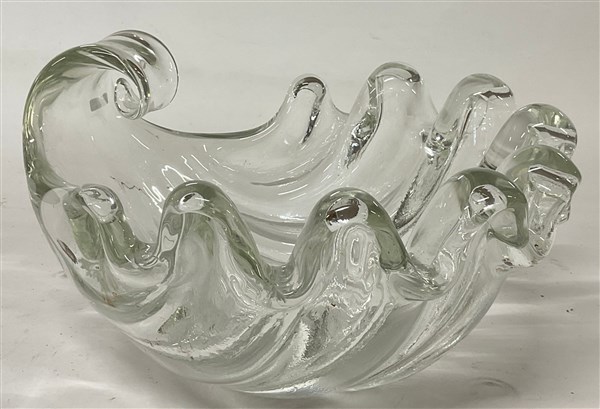 Scultura in vetro massello trasparente incolore raffigurante una conchiglia. Secolo XX. (cm 32x20) (lievi difetti)