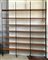 Libreria a tre campate con montanti in ferro verniciato nero e ripiani a giorno