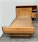 Letto singolo Novecento in legno chiaro massello e impiallacciato in radica, testata attrezzata con comodino di forma semicilindrica. Italia, anni '30. (cm 123x91x209) (difetti)