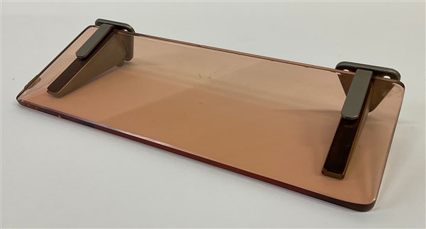 Piccola mensola in vetro rosambrato, gancetti in metallo. Milano, anni '50. (cm 25,5x9,5) (lievi difetti)