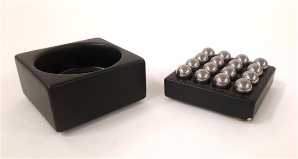 Franco Pozzi Lotto composto da un posacenere e un porta biglie in ceramica nera.